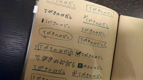 トラベラーズノートに手書きの見出しをストックしていました。 何となくこのページを開いたときに、いつもと違う見出しがかけたらと思って、面倒だけど書き込み。 アレンジしたものはセンスないですが、アイデアの元にでもなればと思っていれば取り組んだ記…